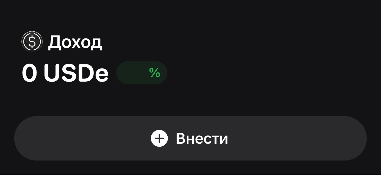 - На странице «Доход Ethena» нажмите на кнопку “Внести”.